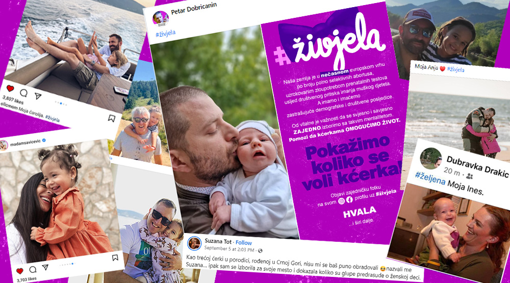 “Objavama fotografija kćerki uz očeve i majke na društvenim mrežama, ličnim i emotivnim angažmanom javnih ličnosti, influensera i savjesnih građana, ukazano je na drastično smanjivanje broja novorođenih kćerki u Crnoj Gori”, ističu iz NVU “Dobar život”.