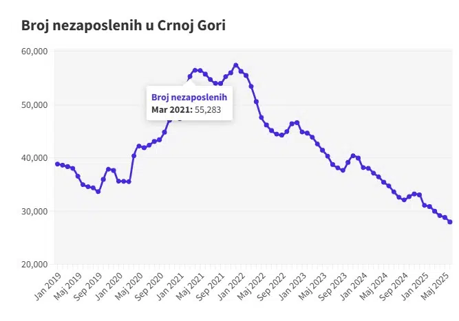 U Crnoj Gori je na kraju juna bilo 27,95 hiljada nezaposlenih, 2,9 odsto manje nego u maju, pokazuju podaci Zavoda za zapošljavanje (ZZZ).